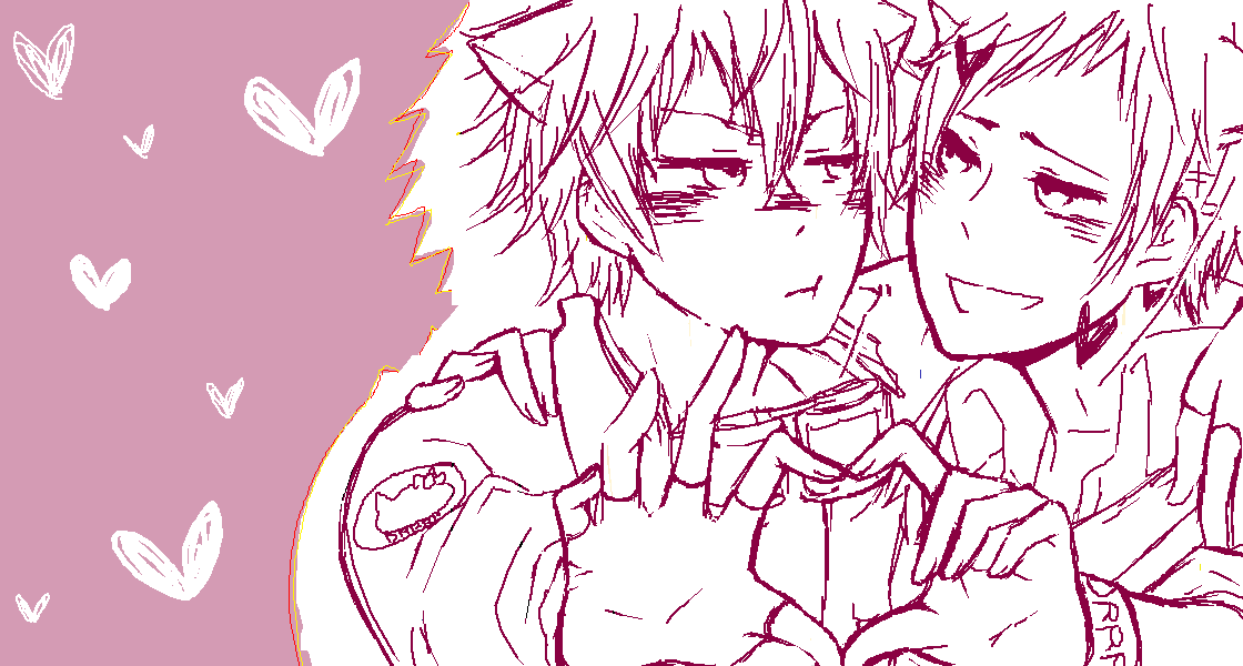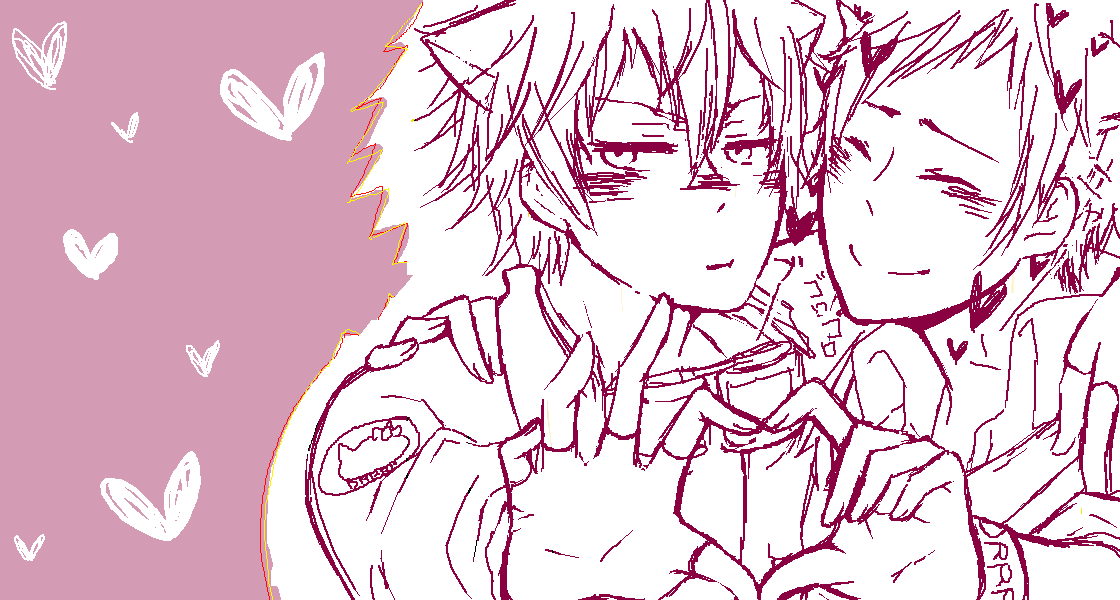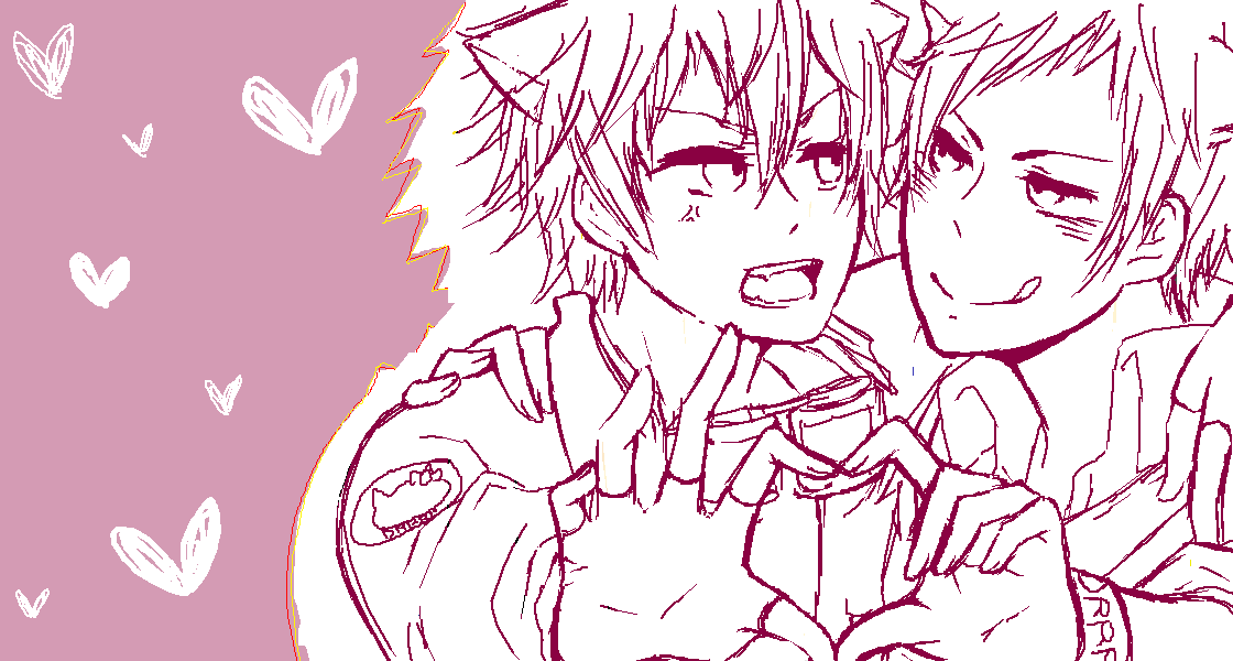 Dear Girl~Stories~響のオノDとヒロCの服を中の人つながりで しずちゃんと臨也に着せてみたが、ポーズまで真似しなくてもよかったのか← 今こんなの描いてるーってのしちゃん’s姉に言ったら途中で絵ちゃ室に入ってきてくれた!ありがとう! 久々にちゃんと絵を描いた気がしますw 何故かよくわかりませんがこの二人はハートが似合う気がする(笑 ついついハートを増殖させてしまう・・・・・もうラブラブでいっちゃえよ!← ラブラブといえば、この前のしちゃん’s姉にあげた小説がゲロ甘くて自分でも何でこんなん 書いたんだ!ってぬぉぉぉぉぉってなってました。 もうなんだかシズイザなんだかイザシズ何だかよくわかりません、てかもうどっちでもいいよ(笑)← しかし最近こんな感じの腐った話を日記に書けるようになってきて、進歩したかな?と思ってます(❀ฺ´∀`❀ฺ) てか進歩じゃなくて頭の中で何かが切れたんでしょうね(笑 上の絵の続きのっけまーす 色を消して線画の色も変えて猫耳つけてみた。 のしちゃん’s姉に好評で良かったです(❀ฺ´∀`❀ฺ)ノ こうなった瞬間「静雄食われる、臨也に食われる」でしたよ(笑 表情変えるのすごい楽しいです、ちょっといじるだけでだいぶ変わるもんだw この後のものせますがハートが増殖しますw 自分で描いてたのにしずちゃんそこで顔赤くするなってつっこんでましたw でものしちゃん’s姉とこんな猫ほしいねーって話し合ってました(笑 そしてポーズを変える気なんてない← 臨也うざいw 「静雄こっちを見るな、臨也を見てないとほんとに食われるぞ」 って言う会話があった気がする← 眠くてあんまり覚えてないんですよねー、文も保存しとくべきか? この臨也を見たのしちゃん’s姉(打つのがめんどくさくなってきた、よし今度あだなつけよう)は 「久々に臨也を本気で可愛いと思った!」って言ってましたよ(笑 可愛さよりうざさが勝ってしまうそうですw のしちゃん’s姉(よし今度あry)はセルティラブだった気がするw しかし臨也は猫っぽい、てか猫に見える(笑 実はこれのあともあったんですが保存してません、保存し忘れたんじゃなくて保存しなかったんです。 臨也が犯罪者っぽかったのでw← ゴロゴロがハァハァになってましたし(笑 てか私の頭はこのままどうなるんでしょうね?w もっといろんなポーズ描きたいです☆ それではアデューですb PR |