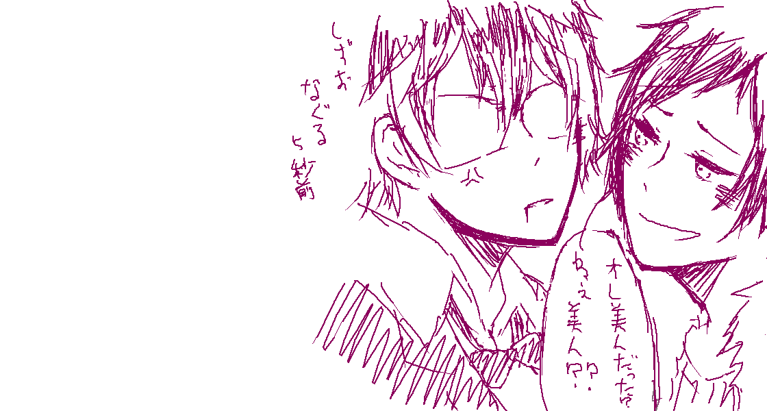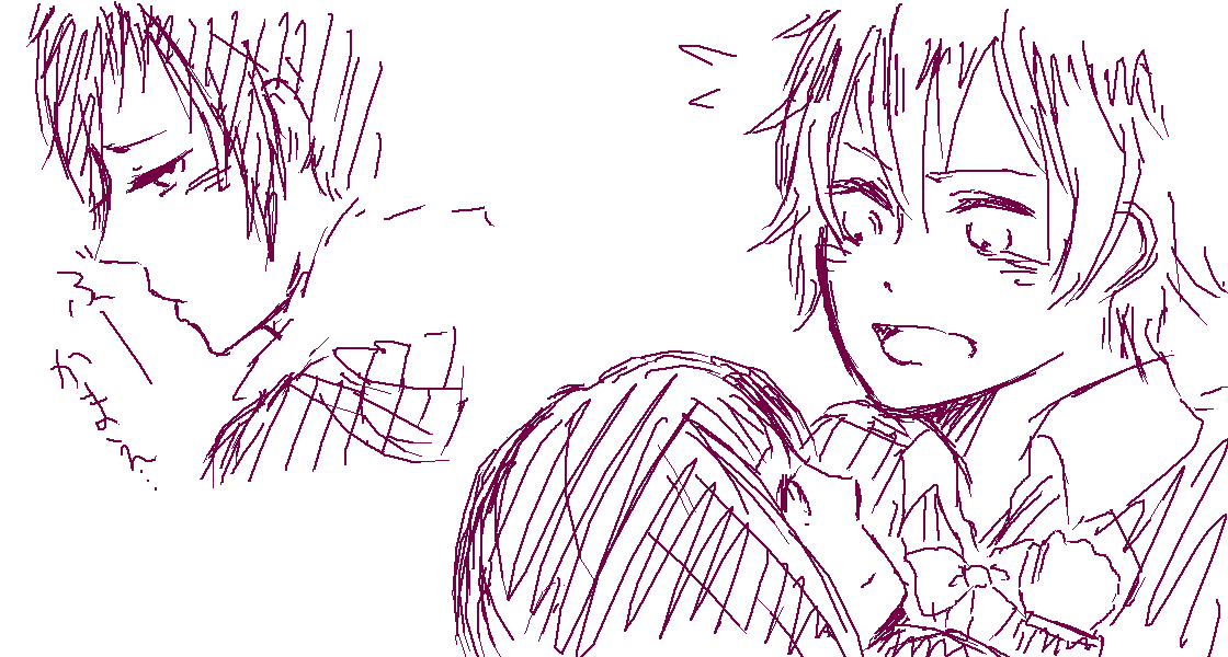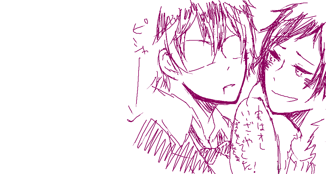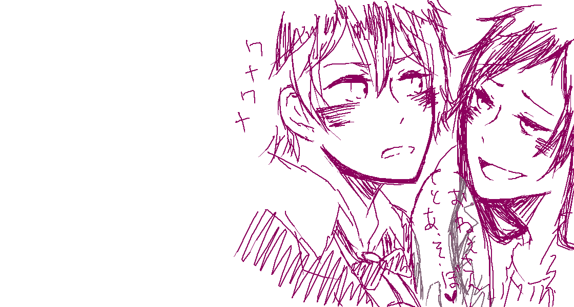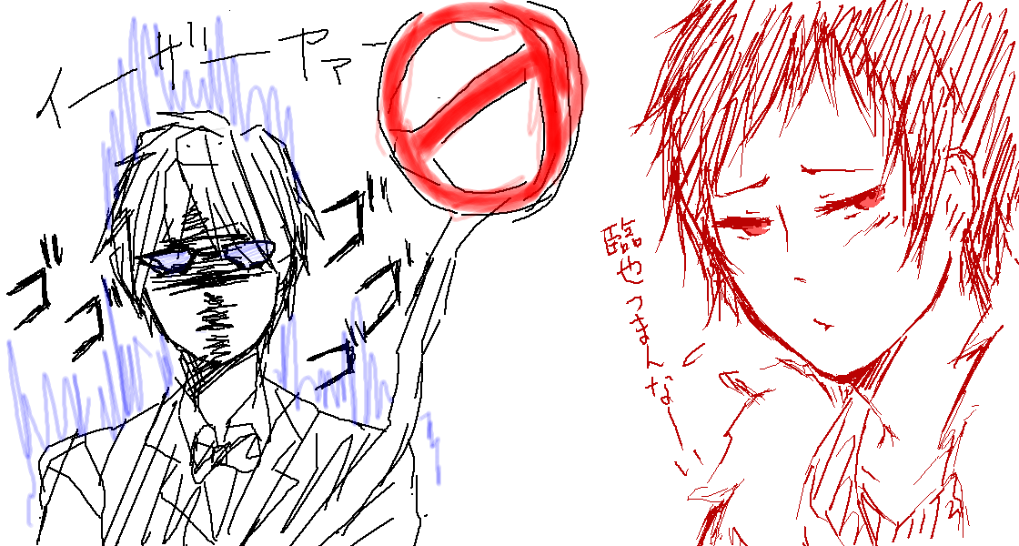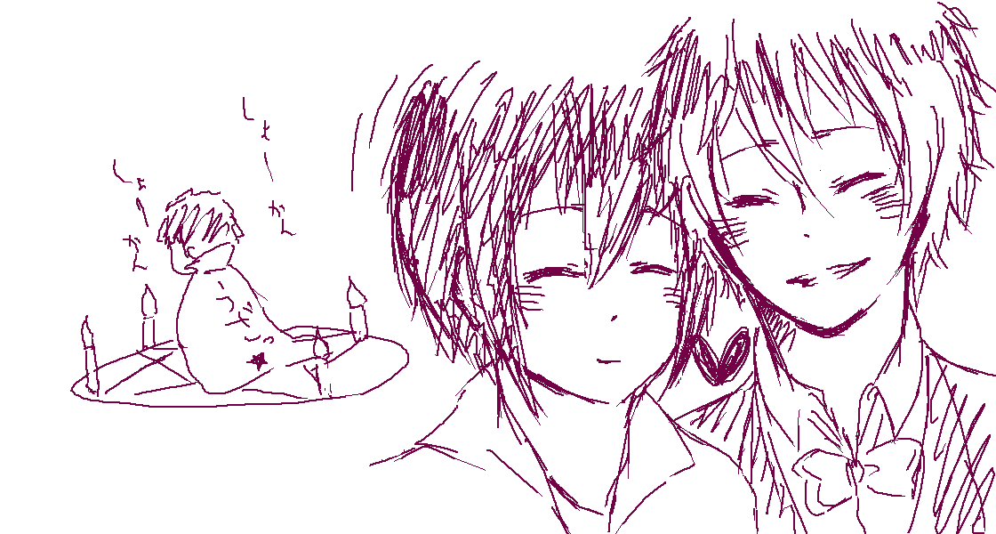 4月12日 4月13日 4月16日 4月17日 こんなかんじですb のしちゃん’s姉、のしちゃんいつもありがとう!ほとんどわたしの絵だが・・・。 のしちゃん’s姉と絵ちゃすると私が絵を描いて姉がコメントするってかんじなので(笑 4月12日は甘楽は女装で静雄は女体化だよねって話がありましたw 一人でパーリーな私。 4月13日の最初のやつはLamentoからコノエです。あとはデュラ・・・。 4月16日の最初は咎狗の血からリン。なんかリンがすごく描きたかったです。 その次のやつはシキティ(笑 途中でのしちゃんがセルティかいてくれた!!ナイスバディ! あとニワトリとかヤギとかマルチーズとかトビは私が描きました。 何故か描きたくなった(❀ฺ´∀`❀ฺ) てかのしちゃんのしずちゃんが可愛すぎてもう・・・・w 猫高い高いするなんて(*゜ω゜)鼻血が出ちゃうわ← ドレスセルティは私が描きたかっただけです。 それから臨也のフードは危ないと思います、たぶんこうなる。 私はフードつきの服を着るとよく引っ掛けます。 4月17日のリンは咎狗アニメ化祝!ってことで描きました、模写ですが。 アニメ今から楽しみで仕方ないです♪ それでは長々スイマセンでした! PR |