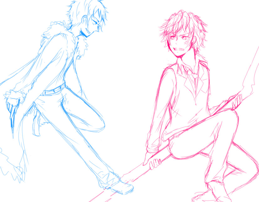 最近更新してなくてスイマセン・・・リアルが忙しかった・・・。 宿題とかテストとか部活紹介とか。 部活紹介は今週いっぱいまであるんですけどね。 後輩達がいっぱい来てびっくりしました(❀ฺ´∀`❀ฺ) あと更新できなかったのはリアルもあるが、絵ちゃしたり絵描いてたりもある← 絵ちゃは長いので今度にしますb 今描いてる絵 下書きですね。 本当はもっとバックに線画ぐおおおおってありましたが見にくいので消しましたb ペン入れしたらこんなかんじに・・・ 何この構図・・・意味がわからない!← 最初はしずちゃんだけでカメラ目線だったんですが、臨也も描いとこうってなって 描いてみたらこんなになりましたとさ(笑 色分け だいたいこんなかんじで塗ろうかな的な色をチョイス。 てか私の絵の描き方とか塗り方とか自己流すぎてどうにもできない。 臨也が真っ黒く黒助(笑 しずちゃんのベルトが赤いのが可愛いと思います、携帯オレンジだしw それでは明日からは塗りこんでいきたいと思います! 今日は寝ます、おやすみなさい~ |